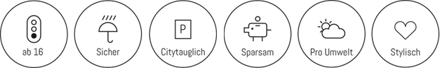 *Für das Führen eines Leichtkraftfahrzeugs mit 45 km/h wird die Führerscheinklasse AM benötigt. Diese kann in Nordrhein-Westfalen und den meisten anderen Bundesländern bereits ab 15 Jahren, in allen übrigen Bundesländern ab 16 Jahren erworben werden. Eine aktuelle Übersicht zu den Regelungen in den einzelnen Bundesländern finden Sie hier.