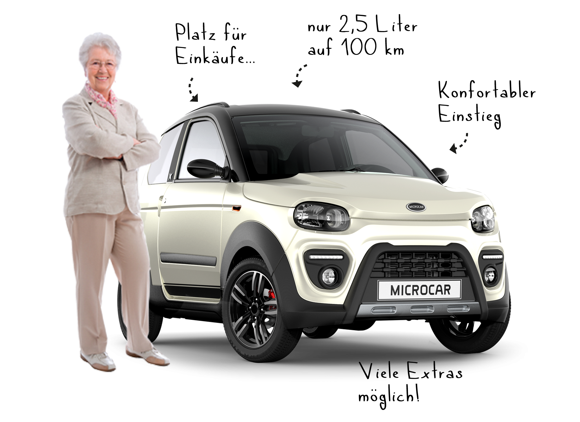 Alle Modelle von Ligier Microcar können ab 15* Jahren gefahren werden. Damit kann auch mal Ihre Enkelin oder Enkel die Einkäufe erledigen.